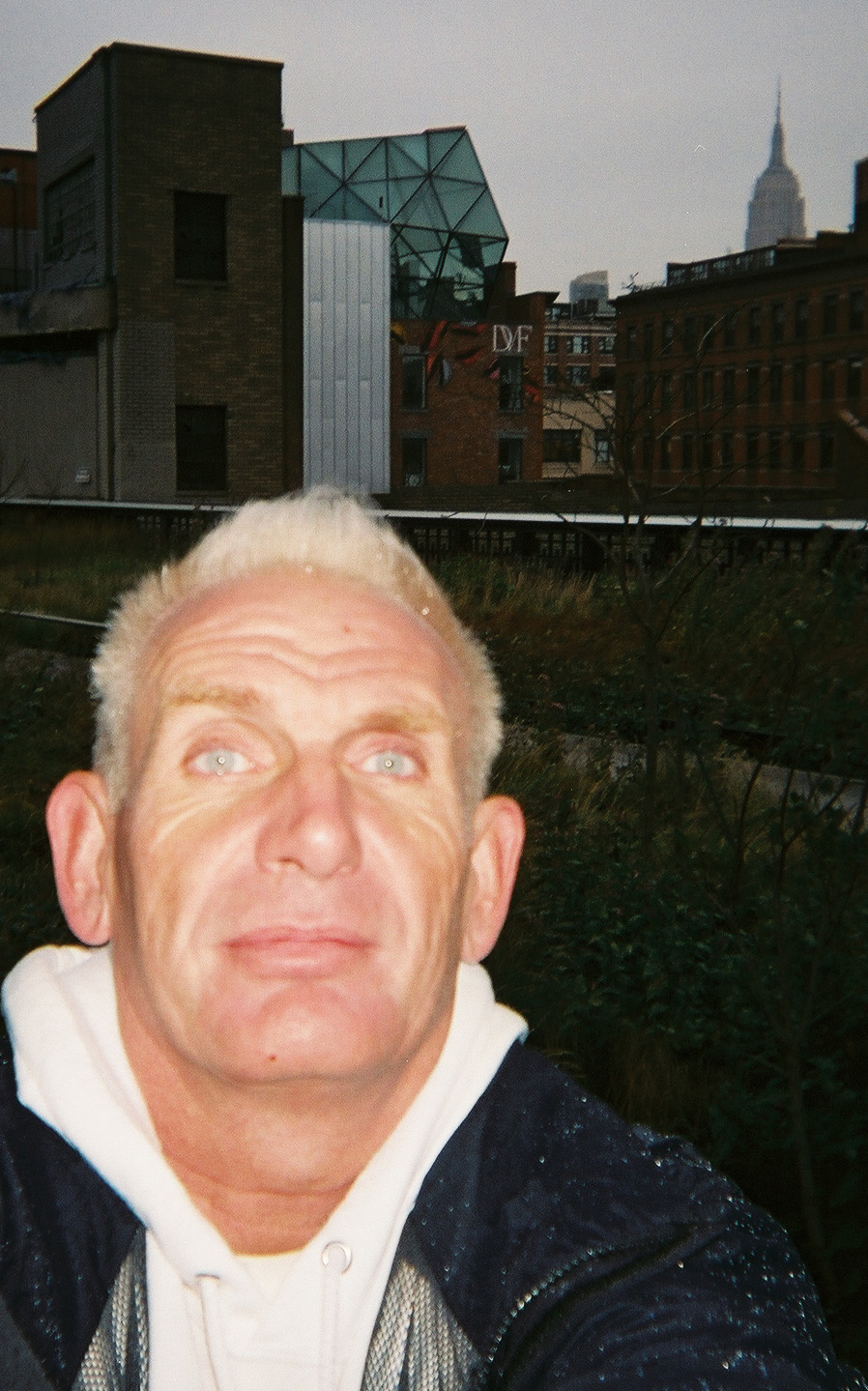 | The Marathoners got lucky to have dry weather and sunny skies on Sunday. Things were not so pretty on Monday. No, that is not dandruff on Coach Tom's jacket, but Hail! Yes, I popped up out of the subway and was met with spitting, stinging hail stones the size of rock salt. Off in the distance is the top of the Empire State Bldg. |